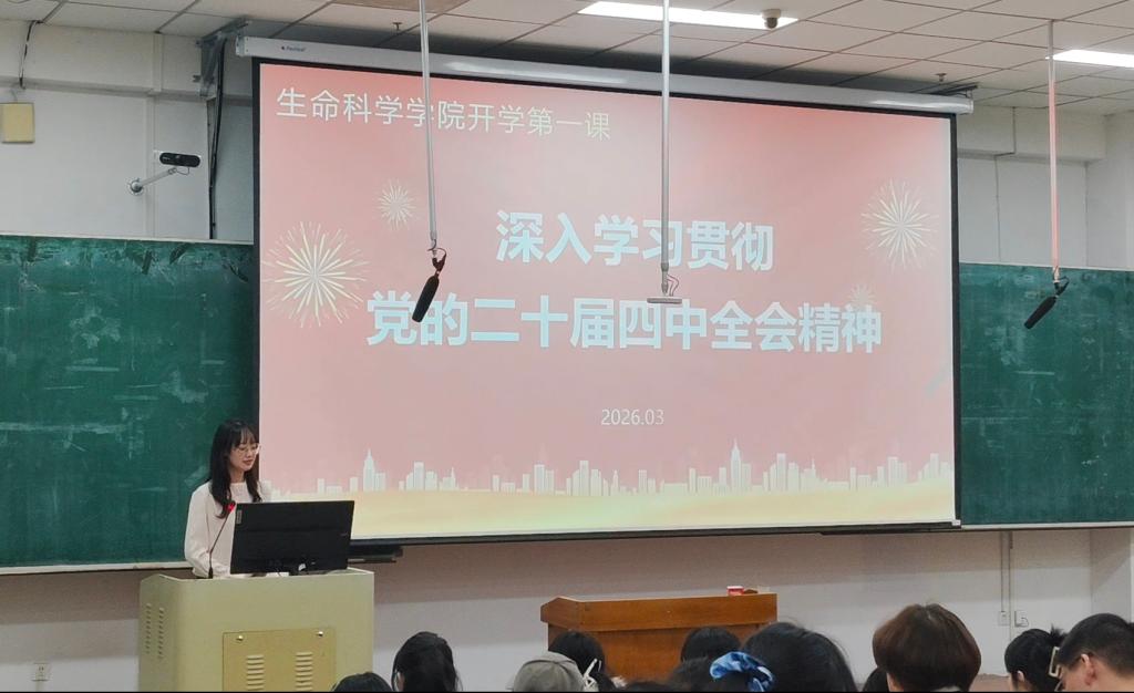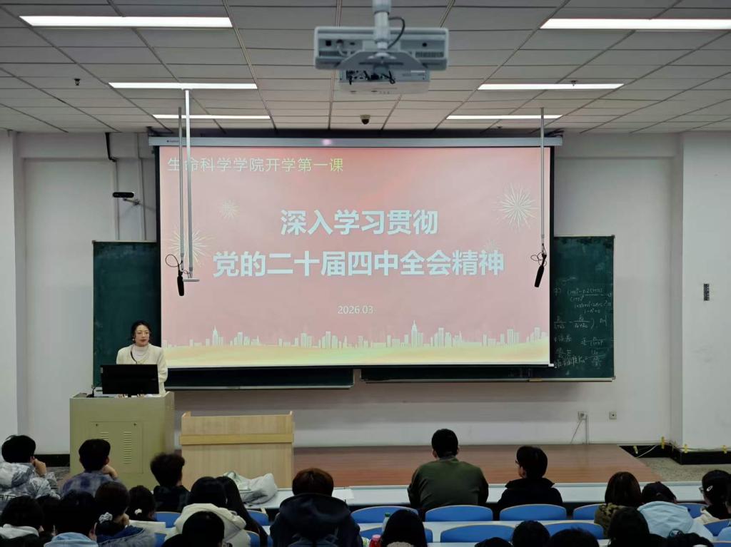 为深入贯彻落实立德树人根本任务,切实上好新学期开学第一课,把思想政治教育贯穿育人全过程,引导全体学子深刻领会党的二十届四中全会精神核心要义,将个人成长融入国家发展大局,生命科学学院开展开学第一课系列活动,组织《深入学习贯彻党的二十届四中全会精神》专题学习,以理论学习开篇,凝聚青春奋进力量,开启新学期育人新征程。