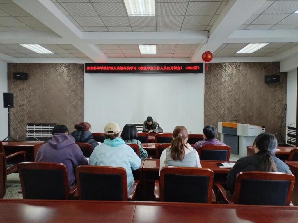 随后,各系由各党支部书记组织,深入学习《事业单位工作人员处分规定》。行政人员辅导员由党委副书记宋国东领读领学《事业单位工作人员处分规定》。