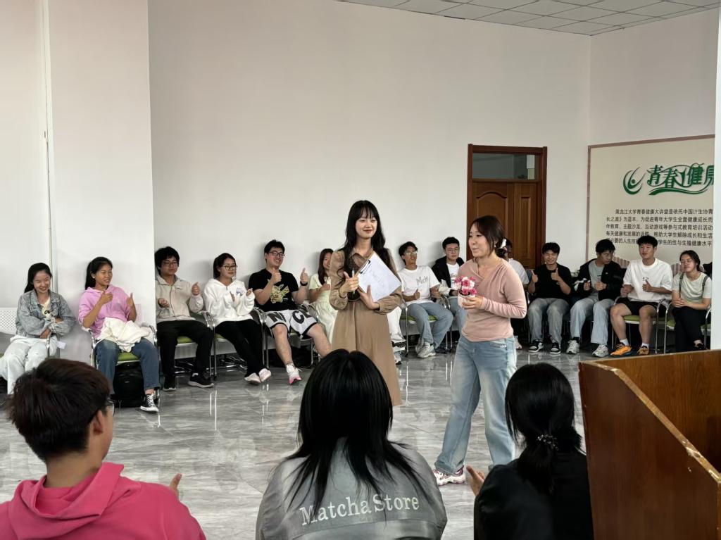 在“默契排队”“自我介绍”“大风吹”等环节中,同学们通过有趣的活动培养默契,体验乐趣,增进感情。在大学生活五个最中,大家回忆入校后的点点滴滴,聆听自己内心的真实声音。在我的资源环节,大家共同思考未来的努力方向,树立正确的目标。最后,同学们共同完成“翻绳”环节,在欢声笑语中圆满完成了此次活动。