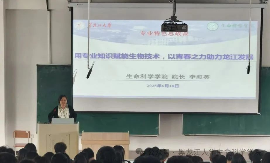 为全面贯彻落实《中共中央、国务院关于加强和改进新形势下高校思想政治工作的意见》《关于深化新时代学校思想政治理论课改革创新的若干意见》精神,扎实推进《深化新时代黑龙江省学校思想政治理论课创新创优行动方案》及学校党委工作部署,6月18日,生命科学学院党委书记郑建华、院长李海英化身思政引路人,走进本科生课堂,以一堂主题为《领航思政课堂,共筑时代担当》的专题理论课,为2024级全体同学带来一场思想与精神的盛宴。