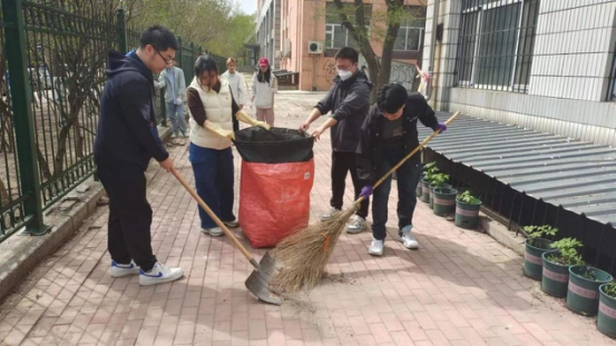 活动开始,将志愿者分为七组同时进行劳动,明确每个小组的劳动目标,在组长的带领下有序领取劳动工具,戴好提前准备好的手套,以饱满的精神状态参与到志愿活动中。志愿者们围绕生命广场清理花坛杂物、清理雨盖灰尘、捡拾地面垃圾、清扫干枯树枝等,他们认真劳动、分工配合,很快将劳动区域打扫干净。有同学表示,之前在家没有做过家务,不会干活,但是今天跟着大家一起进行志愿服务,感觉很开心很有成就感,以后也会多多参与。