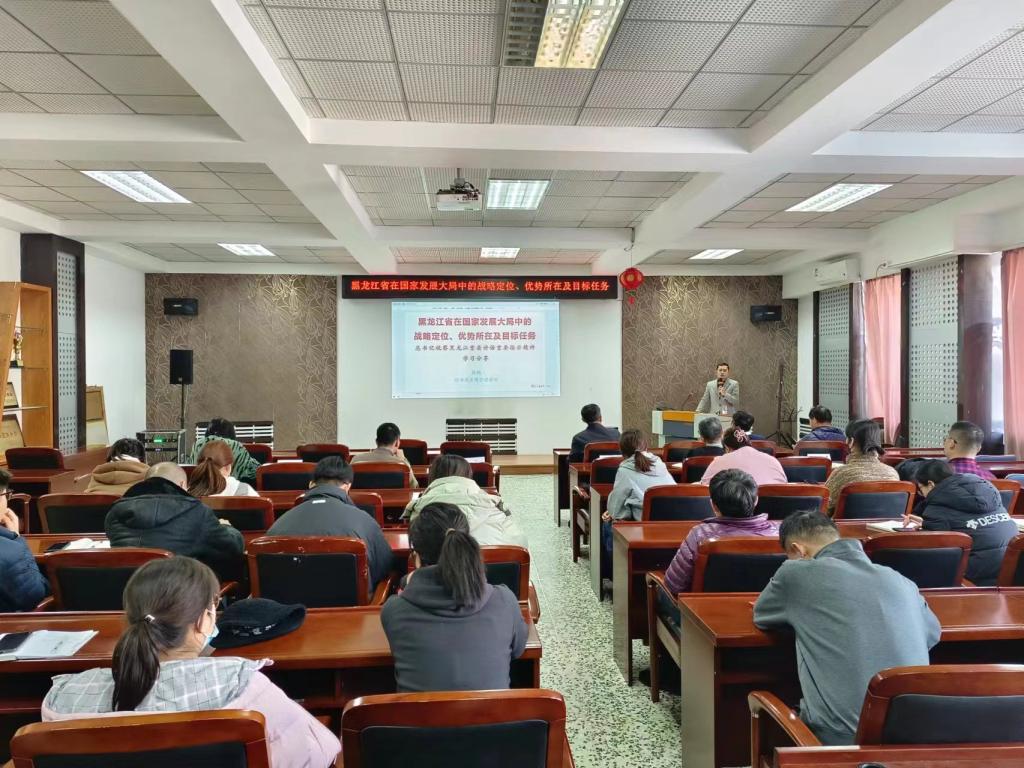 魏枫教授首先用战略定位(取得新角色)、优势所在(迎接新机遇)、目标任务(展现新作为)总体概括了本次理论宣讲的主题。接下来,魏枫教授从深刻领会习近平总书记赋予黑龙江的战略定位、深刻领会习近平总书记指出黑龙江的优势所在、深刻领会习近平总书记指出黑龙江的目标任务三个方面,深入阐释了黑龙江在国家发展大局中三个基地、一个屏障、一个高地和维护国家五大安全的战略定位;资源优势、产业优势、区位优势、科研优势、生态优势,龙江高质量发展的新动能新优势;科技创新方面、提升开放合作、农业发展方面、提高人口素质、优化营商环境五点任务。最后,魏枫教授强调只要坚定不移、持之以恒,汇聚各方面力量,形成合力,就一定能够实现龙江全面振兴全方位振兴,就一定能够与全国同步,在第二个百年之际,建成社会主义现代化强国。