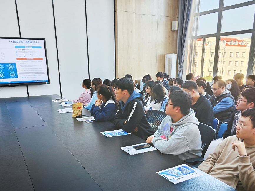 随后,范厂长以自身为例,为同学们讲述就业发展方向选择的重要性与前瞻性,表明公司十分注重个人能力与精神的建设,希望以此形成强大的团队向心力与凝聚力。并对同学们关心的企业人才政策、薪资待遇、晋升方向以及分层分类的培训体系进行细致解答。