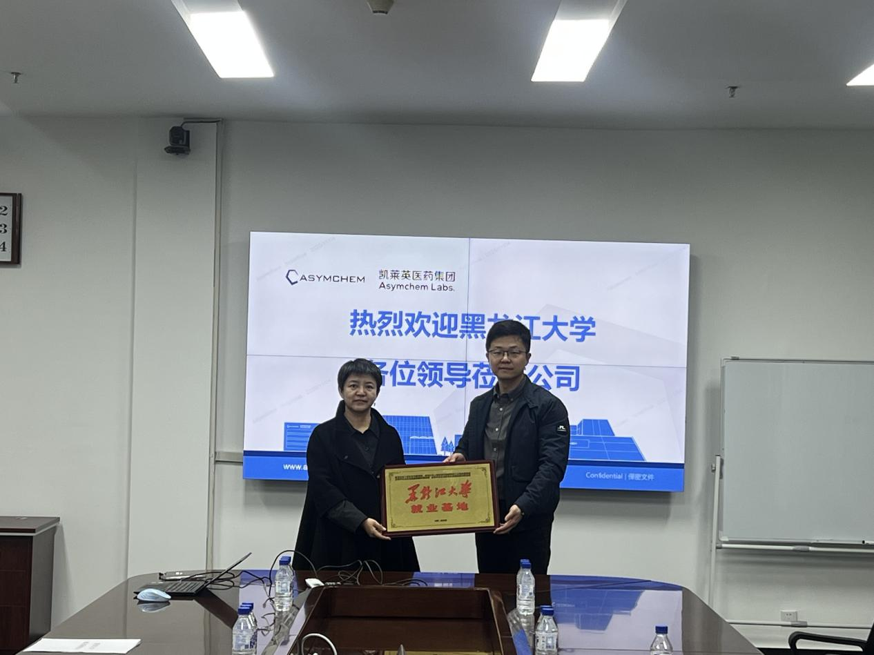在走访与洽谈中,郑建华详细介绍了学院的办学特色、人才培养成果及2026届毕业生情况,并重点围绕当前行业发展趋势、企业人才需求标准、校企协同育人、实习实训基地建设、科研项目合作以及毕业生定向输送等议题,与企业方面开展了富有成效的探讨,并与吉林凯莱英医药化学有限公司进行黑龙江大学就业基地签约授牌仪式。三家企业负责人对学院的人才培养质量给予了高度评价,并表达了强烈的合作意愿,期待能与学院建立长效合作机制,共同培养、选拔符合行业发展需要的优秀人才。