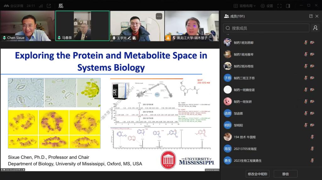 1月14日,学院特邀美国密西西比大学教授莅临讲学,带来题为《Exploring protein and metabolite space in systems biology(探索系统生物学中的蛋白质与代谢物空间)》的专题学术讲座。该专家系统阐释了质谱技术在蛋白质组学与代谢组学中的核心应用,包括蛋白质序列鉴定与定量分析方法,并深入探讨了人工智能技术在质谱图谱预测、蛋白质结构模拟以及代谢物数据库建设中的创新应用。讲座通过具体研究案例,生动展示了前沿技术与生物信息学的深度融合,在交流环节中,师生围绕技术应用瓶颈与学科交叉方向与陈教授进行了深入探讨,现场学术氛围浓厚。