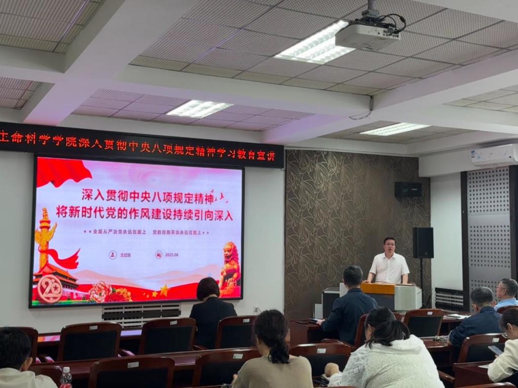 本次宣讲对学院进一步深入贯彻中央八项规定精神学习教育,持之以恒推进作风建设、筑牢拒腐防变思想防线具有重要意义。学院将以此次宣讲为重要契机,涵养求真务实、清正廉洁的新风正气,更好发挥政治引领和政治保障作用,为学校和学院高质量发展保驾护航。(生命科学学院供稿)
