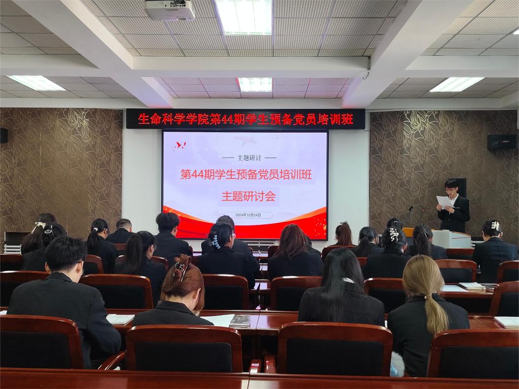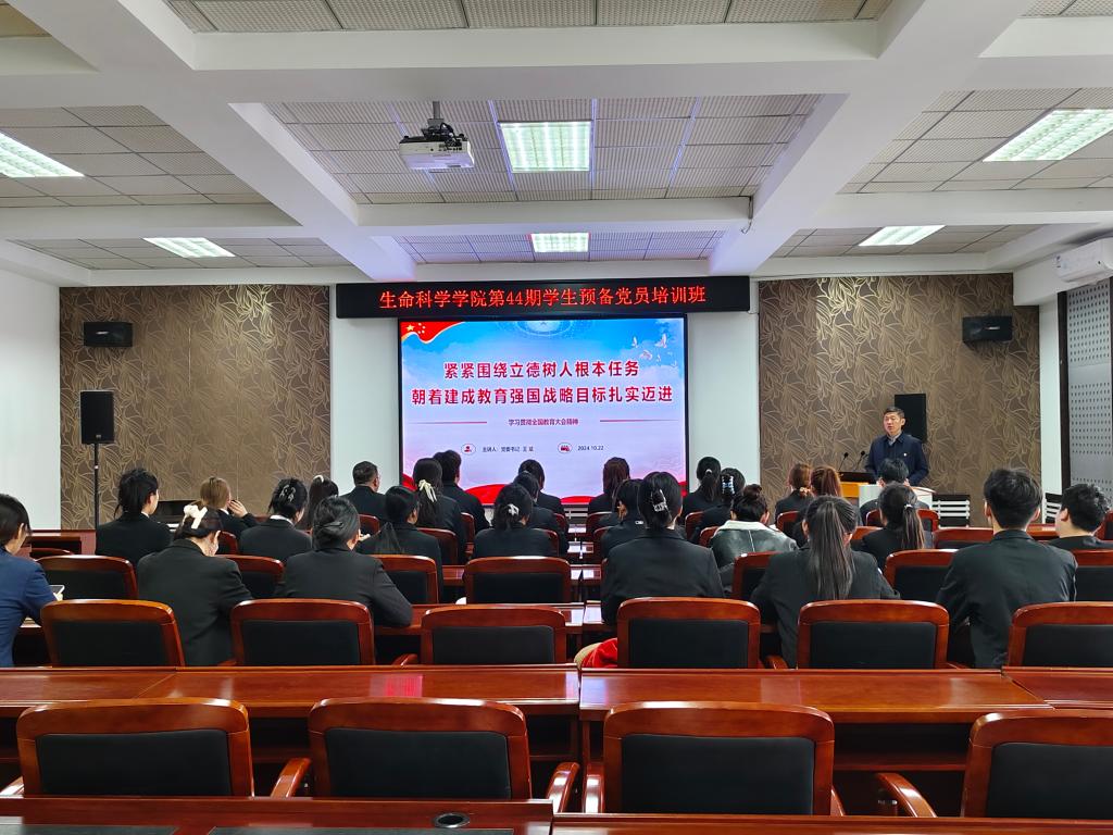 为深入学习贯彻党的二十大和二十届三中全会精神,进一步贯彻落实习近平总书记视察黑龙江期间的重要讲话重要指示精神,全面学习习近平总书记在2024年全国教育大会上的重要讲话精神,夯实学生党员先锋工程,引导广大学生党员进一步发挥先锋模范作用,激发爱党、爱国、爱校情怀,按照《中国共产党发展党员工作细则》和《普通高等学校学生党建工作标准》要求,生命科学学院于10月22日至10月24日在生物楼614会议室举办第44期学生预备党员培训班。本次培训由学院党委书记王斌、团委书记刘明和第二学生党支部书记梁昭宇主讲,学生预备党员参加。