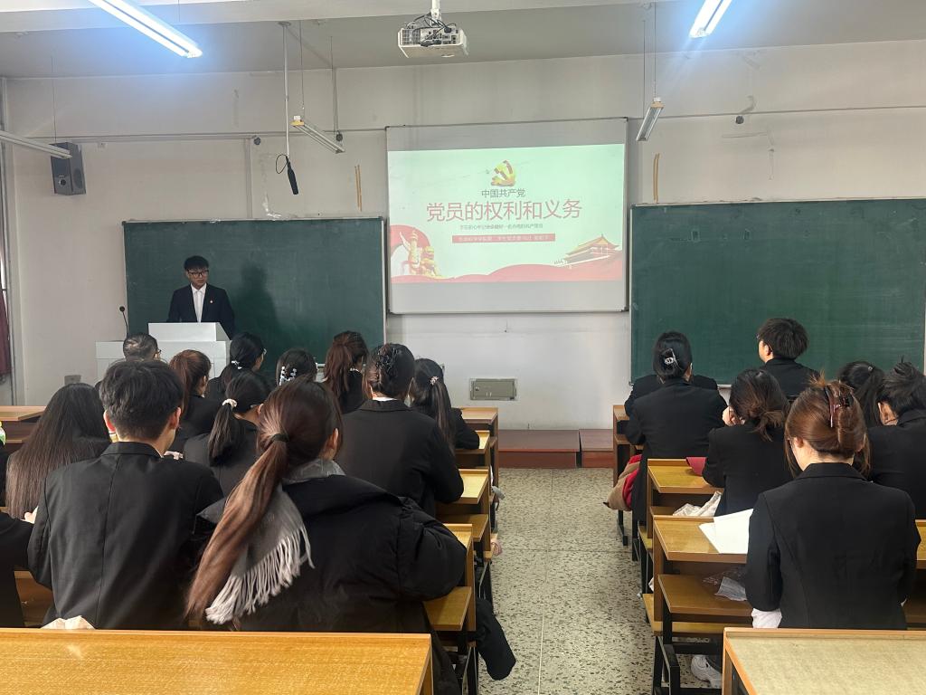 梁昭宇老师以“党员义务与权利学习”为主题,从党员义务的实质及意义出发,详细解读了党章中的相关规定。梁昭宇老师指出,预备党员应清晰认识自身权利与义务,明确可为与不可为,夯实理论基础,增强党纪意识。同时强调了密切联系群众的重要性,要求大家不忘初心、牢记使命,做一名合格的共产党员,通过学习党密切联系群众的优良传统,不断提高联系群众的能力和方法。