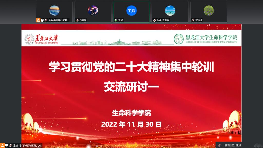 为深入学习宣传贯彻党的二十大精神,发挥领导干部领学促学示范带动作用,按照《关于开展处级干部学习贯彻党的二十大精神集中轮训的通知》要求,11月30日下午15:00和12月2日上午9:00,生命科学学院领导班子召开会议,学院党委书记王斌,党委副书记、院长李海英,副院长张彦龙,副院长马春泉就学习贯彻党的二十大精神、全面推进党的二十大精神在学院落实落细展开深入交流研讨,会议由王斌主持。
