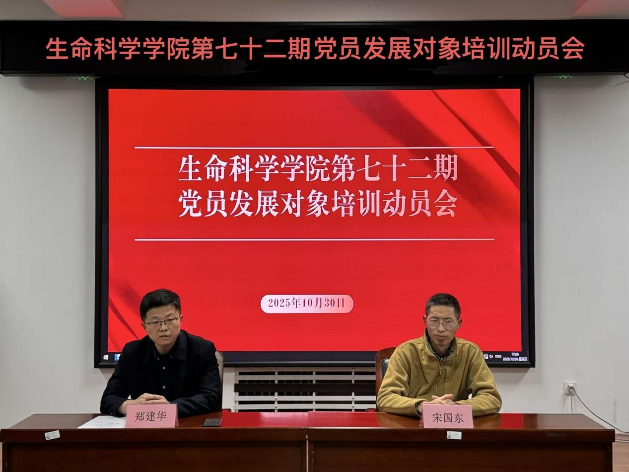根据《关于推进2025年下半年发展党员工作重点任务的通知》要求和《关于举办黑龙江大学第七十二期党员发展对象培训班暨学习贯彻党的二十届四中全会精神专题培训班的通知》,生命科学学院于10月30日至11月5日组织开展第七十二期学生党员发展对象系列培训。