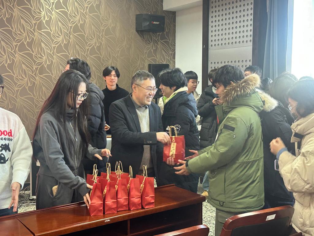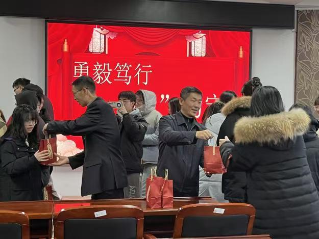 随后,与会领导、辅导员共同为参加2025年全国硕士研究生招生考试学子送上学院定制的助考加油包,并为每一位考研学子送去了温暖的关怀与祝福。
