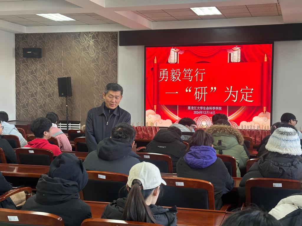 为缓解学生们的考研压力,帮助2021级考研学子提振信心、加力备考,传递学院的温暖与关怀,生命科学学院于12月16日11:00在生命楼614召开2025年硕士研究生招生考试考前动员会暨爱心助考活动,生命科学学院党委书记王斌、院长李海英、党委副书记宋国东、副院长马春泉、各年级辅导员参加活动,活动由宋国东主持。