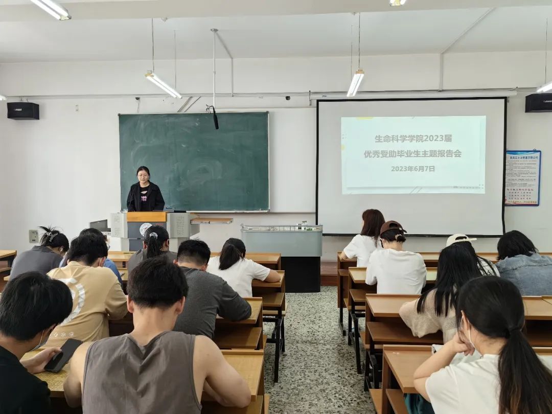 为广泛宣传国家资助政策,加强对受资助学生的诚信教育、感恩教育、励志教育,深化受助学生对党和国家的感恩之情,提高学生的诚信意识、风险意识和感恩意识,引导学生珍爱信用,理性消费,树立正确的消费观和价值观,进一步“树典型、学榜样”,构建“助学金+感恩”“奖学金+榜样”“勤工助学+赋能”“助学贷款+诚信”的多元化发展型资助育人体系,增强当代大学生的使命意识和责任担当,生命科学学院结合《黑龙江大学2023届毕业生离校“十五个一”主题教育方案》于2023年6月7日12:30在农学楼522开展2023届优秀受助毕业生主题报告会。2023届毕业生辅导员刘明主持,2023届受助毕业生参会。
