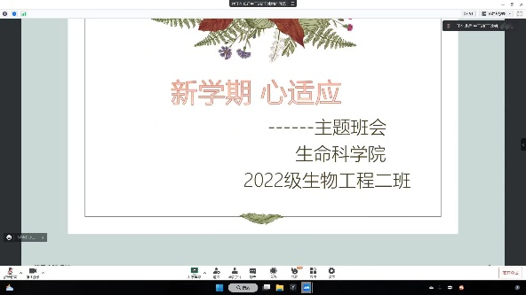 为进一步扎实推进我院心理健康教育工作,加强心理健康教育知识的普及,生命科学学院二级心理辅导站积极响应学校“开学第一课”暨第二十届“3·25-5·25”大学生心理健康教育宣传月活动。结合学院实际情况以班级为单位线上线下相结合的方式开展“分担风雨·共享阳光”生命教育主题心理班会,进一步引导同学们认识生命、珍惜生命、敬畏生命,培养同学们自尊自信、理性平和、乐观向上的积极心态。共开展主题班会10次,2022级全体学生参与。