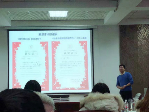 报告会伊始,郭坤分享了自己早期学习经历以及科研启蒙。本科阶段通过创业计划类竞赛和课题申报丰富了专业知识,锻炼了自己的能力,为以后的科研打下坚实基础。并希望同学们能够勇于尝试,提高自己的专业素养。随后,他又以微生物发电和储电技术为核心,分别通过微生物-电子间电子传递机理、主要原料、技术研究、发展前景以及目前自己正在从事的工作进行展开讲述。让我们更加了解微生物发电和微生物储电技术的应用,大家都受益匪浅。报告会最后,郭坤学长希望大家充分利用大学时光,敢想敢做,祝愿大家在科研创新的道路上越走越远!